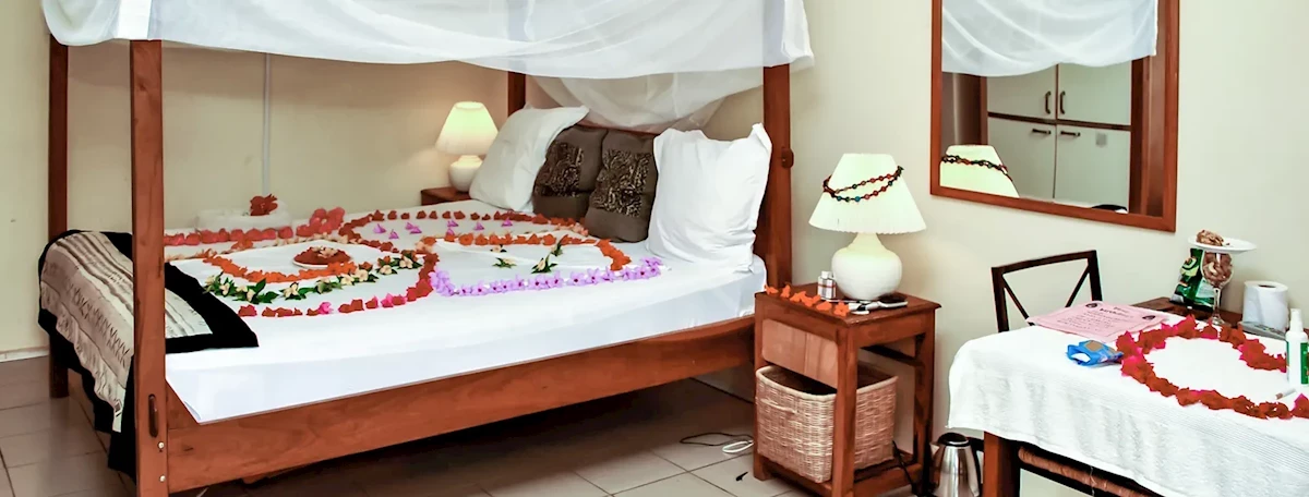 Hotel dysponuje 56 pokojami 2-osobowymi (w niektórych pokojach możliwa dostawka w formie sofy). Pokoje standardowe wyposażone w łazienkę (prysznic, WC, suszarka do włosów), klimatyzację (płatna ok. 5EUR/12 godzin), wiatrak, moskitierę, TV, mini-lodówkę, ekspres do kawy, balkon lub taras. Za dopłatą pokoje Superior (większe, wyposażone jak pokoje standardowe) i pokoje typu Studio (dodatkowo aneks kuchenny z wyposażeniem).