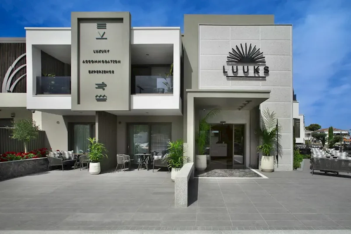 Hotel butikowy Luuks Luxury Accommodation znajduje się około 550 m od piaszczystej plaży, gdzie parasole słoneczne i leżaki dostępne są za opłatą. Miasto Nea Moudania oddalone jest o około 40 km. Najbliższy supermarket znajduje się 150 m od hotelu, a bary i restauracje w odległości około 300 m. Wypożyczalnia samochodów, wypożyczalnia motocykli, przystanek autobusowy przy hotelu oraz postój taksówek (100 m) zapewniają wygodne przemieszczanie się po okolicy. Lotnisko SKG położone jest około 91 km od hotelu.Wyposażenie: