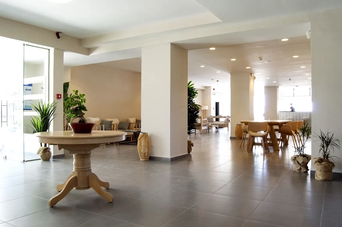W obiekcie mieszczą się 73 pokoje (2 budynki, 3 piętra) o wielkości ok. 12-16 m². Pokoje zawierają udogodnienia, jak indywidualnie sterowana klimatyzacja, łazienka (wanna lub prysznic, wc, suszarka), telewizja satelitarna i lodówka, a także balkon lub taras ze stolikiem i krzesełkami. Dodatkowo przewidziano również dostawienie łóżeczka dla dziecka do 2 lat( na zamówienie przed przyjazdem). Za dodatkową opłatą dostępny jest również internet bezprzewodowy i sejf.