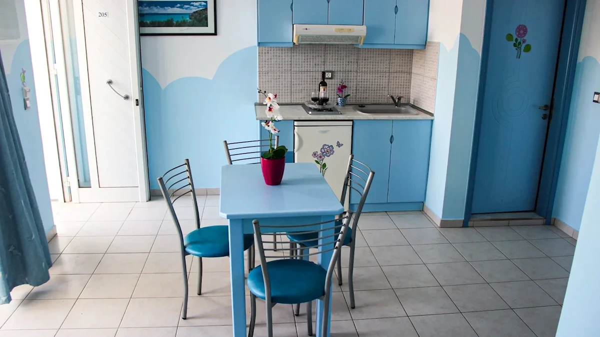 Zakwaterowanie jest czyste, pokoje sprzątane są codziennie. Aneks kuchenny wyposażony jest w podstawowe sprzęty, takie jak płyta grzewcza, zlew i mała lodówka z zamrażarką. Dostawka jest dla nas negatywna. Była krótka i strasznie skrzypiała. Nie do końca tak jest.