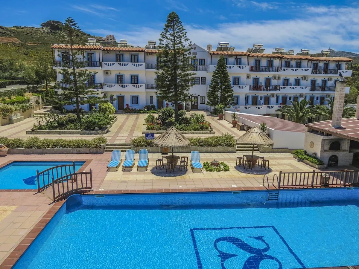 Hotel romantyczny Spiros - Soula Family Hotel and Apts jest oddalony o ok. 950 m od piaszczystej/żwirowej plaży (bezpłatny transfer na plażę). Na plaży leżaki do opalania i parasole słoneczne dostępne są za opłatą. Do turystycznego centrum jest ok. 5 km. Miasto Heraklion jest oddalone o około 18 km (Rethymno około 60 km, Chania około 120 km). Z hotelu można wygodnie dotrzeć do następujących atrakcji: Agia Pelagia (ok. 5 km), Fodele (ok. 10 km), Knosssos (ok. 20 km) oraz Aquarium (ok. 35 km). Wypożyczalnia samochodów i przystanek autobusowy (ok. 150 m) zapewniają mobilność podczas urlopu. W nagłych sytuacjach opieki medycznej udzieli oddalony o ok. 14 km szpital. Lotnisko (HER) położone jest ok. 17 km od hotelu. Kolejne lotnisko (CHQ) jest oddalone o ok. 127 km.Wyposażenie : Ten 3-piętrowy hotel oddaje do dyspozycji gości 40 pokoi mieszczących się w budynku głównym oraz aneksie. Zostały one całkowicie wyremontowane w 2023 roku. Hotel posiada recepcję (check-in od godz. 15:00, check-out do godz. 11:00), windę, klimatyzację, minimarket oraz parking (bezpłatny). W hotelu znajduje się restauracja. Goście hotelowi mogą bezpłatnie korzystać z wi-fi. Hotelowy plac zabaw zapewni mniejszym gościom dodatkową rozrywkę. Usługa sprzątania pokoi jest bezpłatna. Usługa prania jest dostępna odpłatnie.