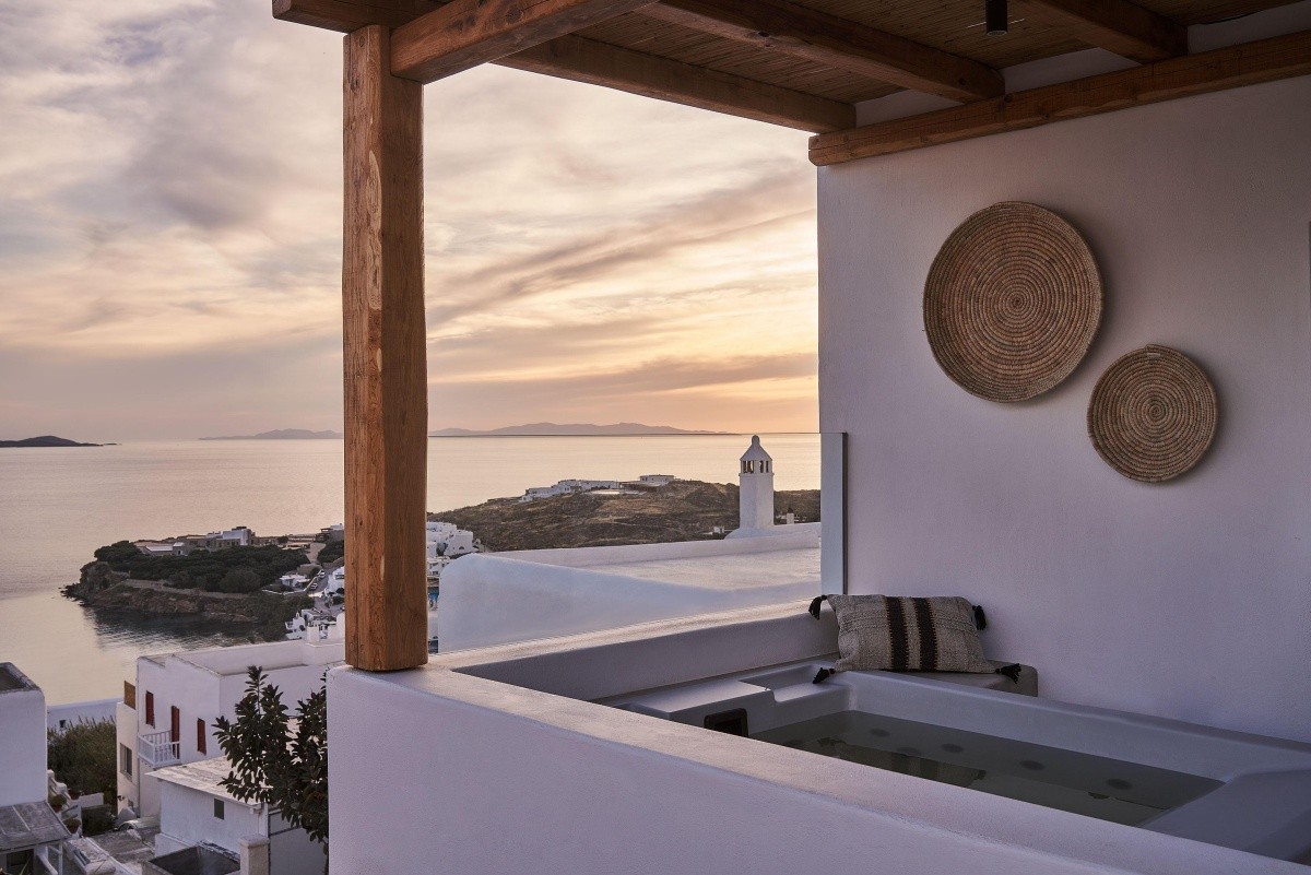 Amyth of Mykonos to luksusowy, a zarazem kameralny hotel, malowniczo położony na szczycie wzgórza z zachwycający widokiem na błękit Morza Egejskiego. Do dyspozycji gość jest 17 pokoi i apartamentów, które charakteryzują się wysokim standardem wyposażenia i zaskakującym wystrojem w stylu boho-chic. Amyth of Mykonos to nie tylko komfortowe zakwaterowanie, ale także doskonała restauracja z kuchnią grecką oraz bar, który jest niezwykle przyjemnym miejscem na relaks przy basenie lub podziwianie zachodu słońca. Dla osób szukających aktywności, hotel oferuje szeroką gamę sportów wodnych oraz nowoczesne centrum fitness, za to goście pragnący spokoju i odprężenia mogą skorzystać z luksusowego spa oraz różnorodnych zabiegów w gabinecie masażu.