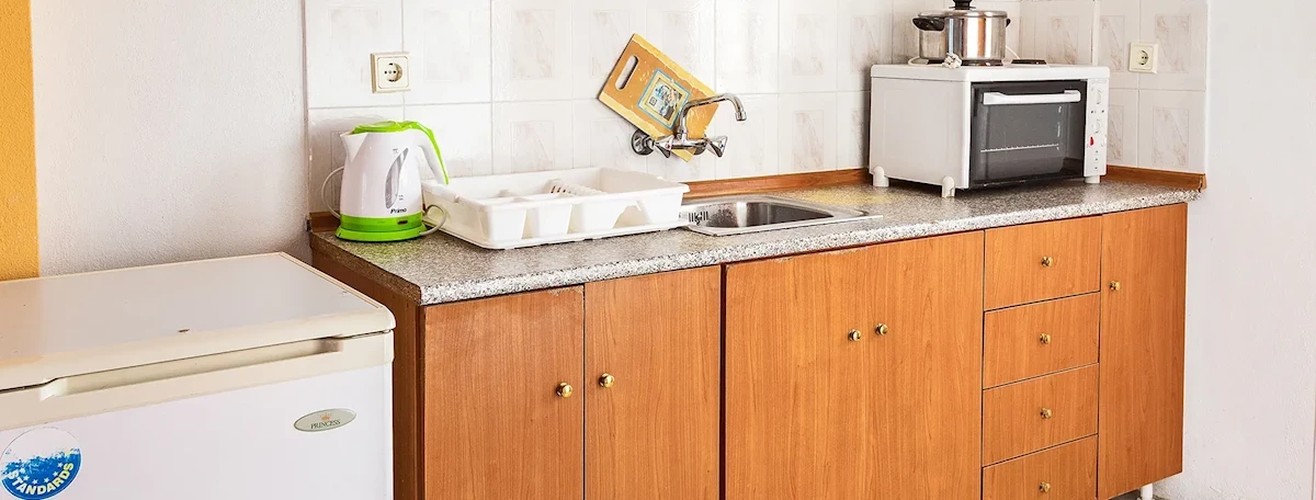 Przestronne studia składają się z pokoju dziennego pełniącego jednocześnie funkcję sypialni dla 2 osób, aneksu kuchennego z podstawowym wyposażeniem (lodówka, kuchenka, naczynia i sztućce), łazienki z wc, TV oraz niewielkiego balkonu/tarasu. Ręczniki i środki czystości we własnym zakresie. Brak łóżeczek dla dzieci.Program