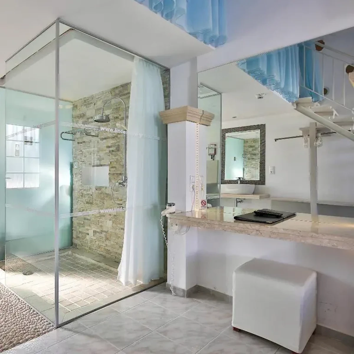 Wszystkie studia i apartamenty w hotelu Lindos View wyposażone są w minilodówkę oraz telewizor z dostępem do kanałów satelitarnych lub telewizor z płaskim ekranem. Większość opcji zakwaterowania dysponuje balkonem lub tarasem z widokiem na ogród lub Morze Śródziemne i akropol w miejscowości Lindos.Wyżywienie