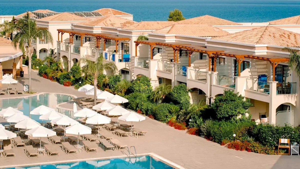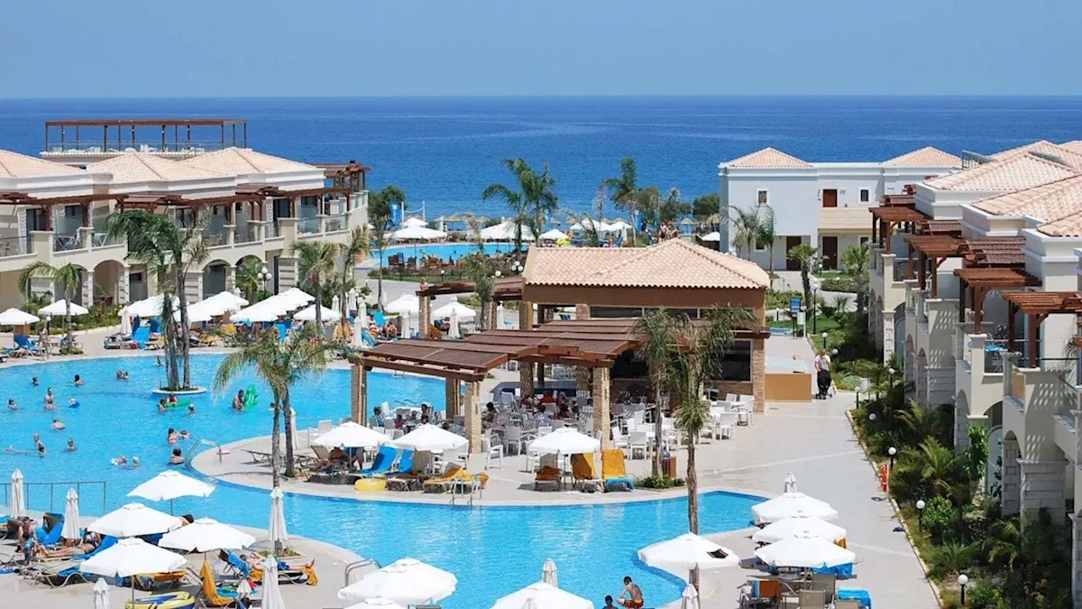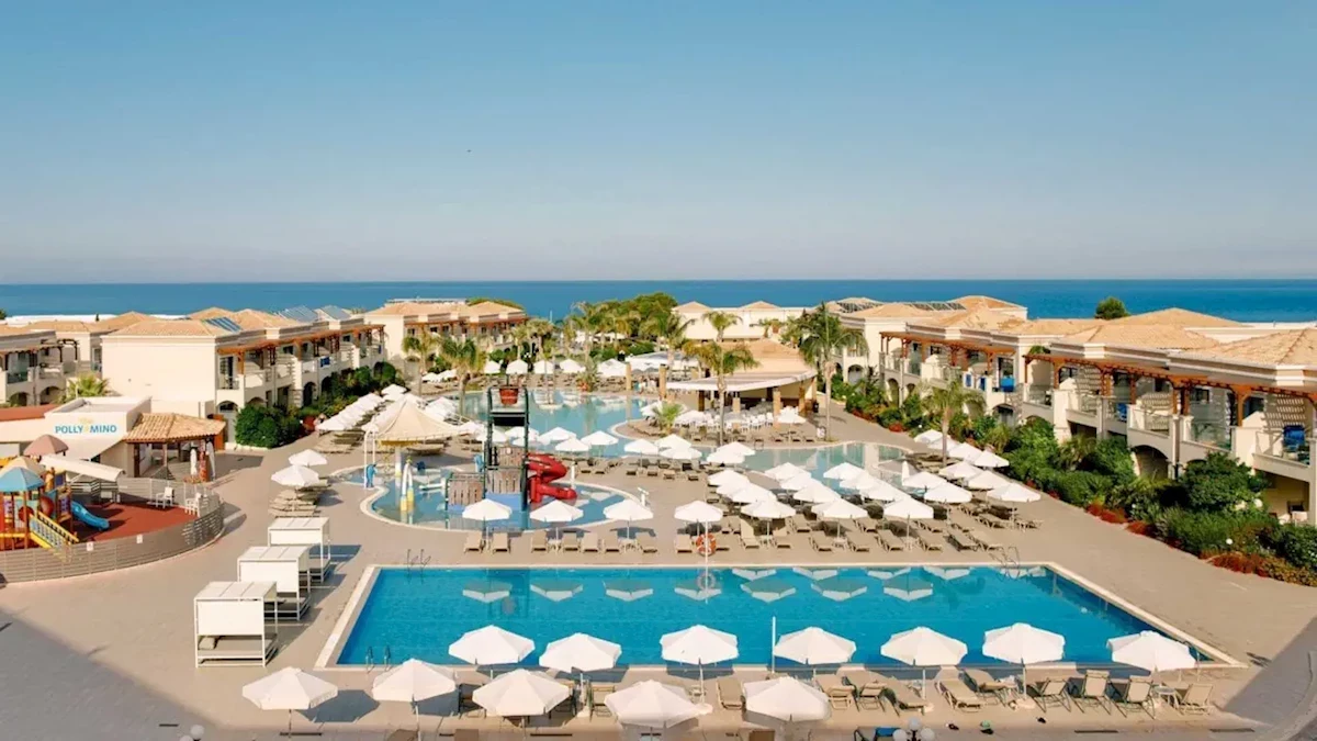 Resort położony jest na obrzeżach malowniczej Kolymbii. Dogodna lokalizacja umożliwia korzystanie z uroków okolicy, a jednocześnie gwarantuje spokojną, rodzinną atmosferę. Bliskość morza z pewnością zachwyci miłośników beztroskiego plażowania. Obiekt ceniony jest również za standard obsługi oraz infrastrukturę przygotowaną z myślą o rodzinach z dziećmi.