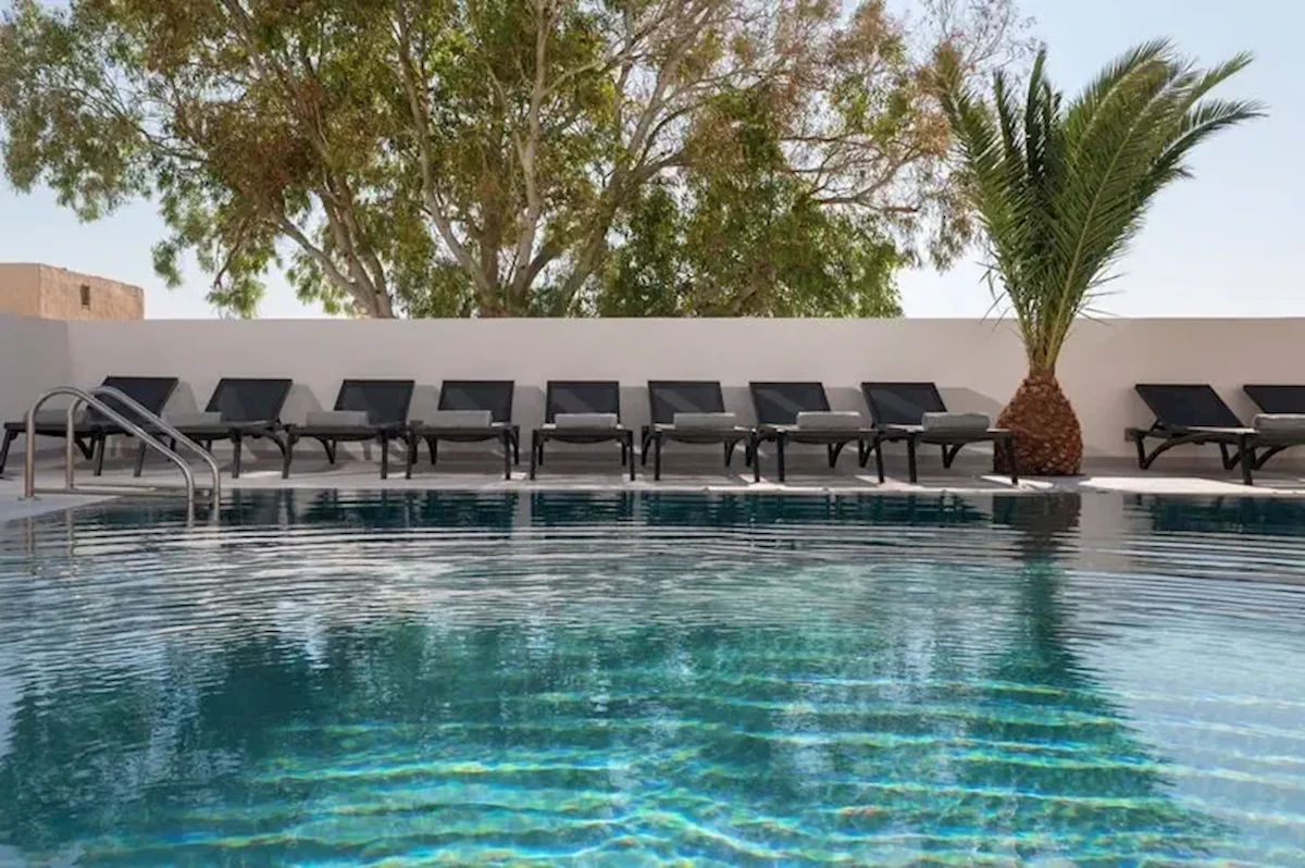 Hotel MAR n MAR Crown Hotel & Suites znajduje się około 300 metrów od żwirowej plaży. Centrum turystyczne znajduje się również w odległości około 300 metrów. Miejscowość Fira jest oddalona o około 8 km, a Oia o około 13 km. Najbliższe sklepy znajdują się w odległości 300 metrów od hotelu, a supermarket około 150 metrów. W odległości 300 metrów od hotelu znajdują się również najbliższe bary i restauracje, a także dyskoteka. Lotnisko (JTR) oddalone jest o około 4 km.Wyposażenie: