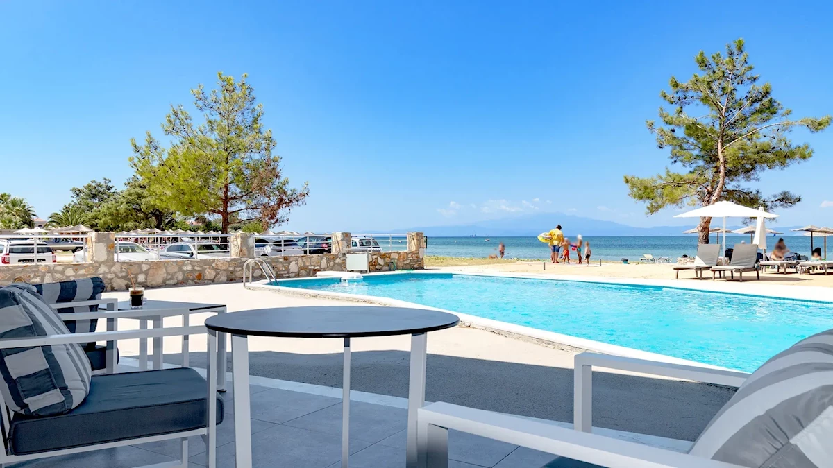 Naprawdę podobały nam się nasze wakacje. Plaża z piękną wodą znajduje się tuż obok hotelu, gdzie znajduje się również bar (choć nieco ograniczony). Wynajęliśmy samochód przez Delegata i objechaliśmy nim ciekawe miejsca na wyspie. Polecamy rezerwację samochodu z wyprzedzeniem, ponieważ nawet we wrześniu samochód był dostępny dopiero po 3 dniach. Wynajęcie samochodu przebiegło bezproblemowo. Wieczorem podstawiono nam samochód przed hotel i wyjaśniono podstawowe informacje (po angielsku). Niestety, tylko niektóre z wypożyczonych samochodów mogą poruszać się po drogach gruntowych, więc nie udało nam się zobaczyć góry Ypsarion, którą chcieliśmy zobaczyć. Tę informację przekazał nam dopiero pan, który podwiózł nam samochód.