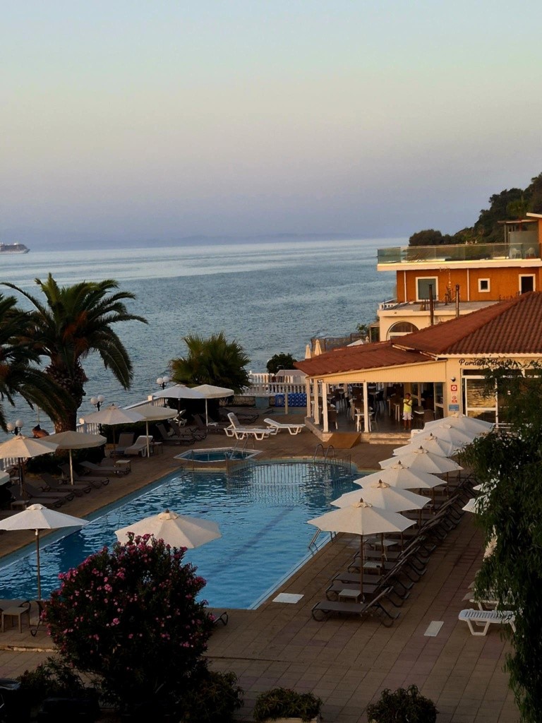 Piaszczyste wybrzeże Morza Jońskiego mieści się bezpośrednio przy hotelowej posesji. Na potrzeby gości ośrodka Chryssi Akti udostępniono wąską plażę publiczną o łagodnym zejściu do wody, na której terenie skorzystają oni z bezpłatnych parasoli oraz leżaków. Za dopłatą zapewniono też dodatkowe usługi, np. opcję wypożyczenia sprzętu sportowego, a także lokale gastronomiczne i sklepy.