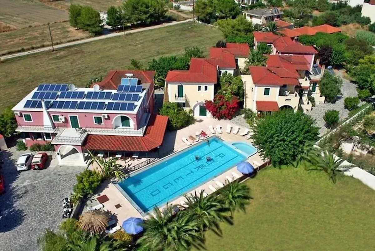ok. 2 km od centrum Laganas ze sklepami, barami, restauracjami i dyskotekami, ok. 6 km od centrum miasta Zakynthos. Port lotniczy Zakynthos oddalony o ok. 4 km.Plaża