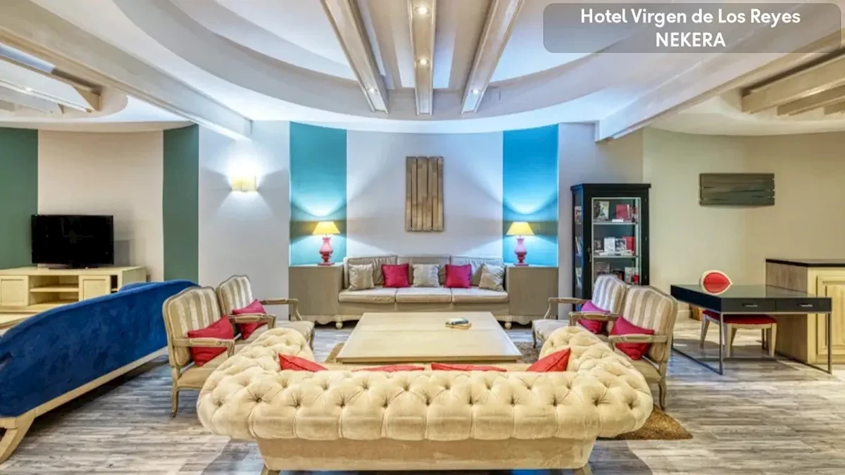 Czterogwiazdkowy hotel Virgen de Los Reyes posiada wewnętrzne patio, oraz odkryty basen. Ponadto, do dyspozycji gości jest także wyciszona strefa czytelni. W hotelu znajduje się restauracja bufetowa oraz kawiarnia bar. Recepcja jest dostępna przez całą dobę, hotel dysponuje także przechowalnią bagażu. Dodatkowo, w hotelu goście mają do wyboru szereg dodatkowych usług za dodatkową opłatą takich jak pranie i prasowanie, wymiana walut, wynajem samochodów, wózków dziecięcych itp. a także minibar.