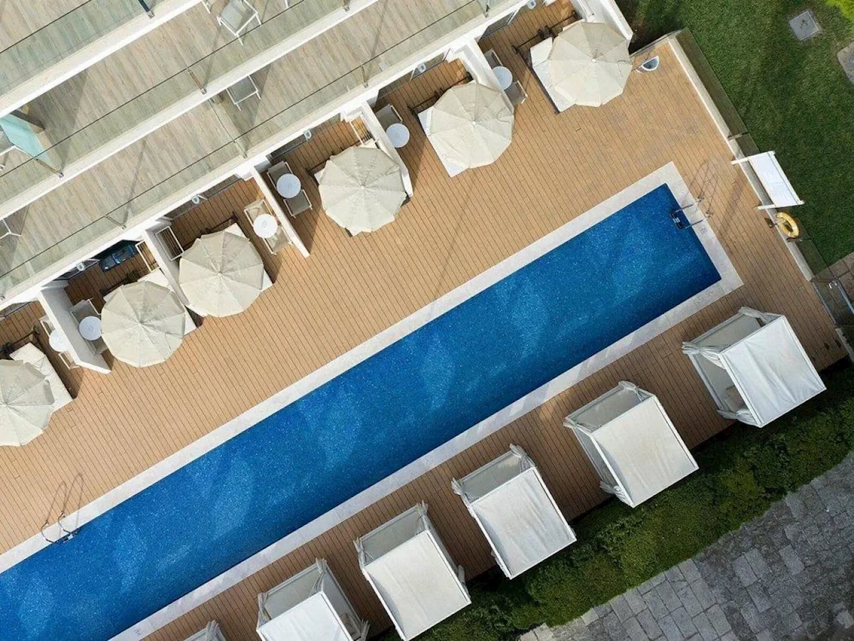 POOL VIEW JUNIOR SUITE SWIM-UP WITH TERRACE - pokój z tarasem i bezpośrednim dostępem do wspólnego basenu. Z oddzielną sypialnią i pokojem dziennym. Wyposażenie identyczne jak w Junior Suite. Dostępne tylko dla osób dorosłych.