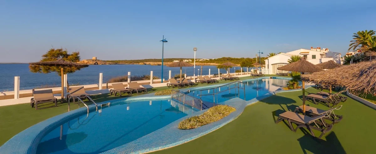 Hotel znajduje się w cichej i malowniczej urbanizacji S'Algar na południowo-wschodnim wybrzeżu Menorki. Do turystycznego centrum jest ok. 200 m. Miasto Sant Lluas jest oddalone o około 6 km (Mahon około 10 km, Ciutadella około 55 km), ok. 200 m od supermarketu. Najbliższe bary i restauracje znajdują się w odległości ok. 100 m, ok. 100m od wypożyczalni samochodów i przystanku autobusowego. Lotnisko (MAH) położone jest ok. 13 km od hotelu.