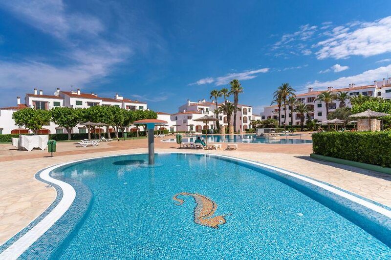 Das Strandhotel liegt in Cala'n Forcat, ca. 200 m vom öffentlichen Sandstrand entfernt. Dieser ist zu Fuß erreichbar. Die nächstgelegenen Unterhaltungsmöglichkeiten können in wenigen Schritten erreicht werden. In unmittelbarer Nähe stehen außerdem ein Supermarkt und mehrere Geschäfte zur Verfügung. Die nächste Stadt Ciutadella liegt ca. 2 km entfernt. Flughafen: MAH ca. 55 km.