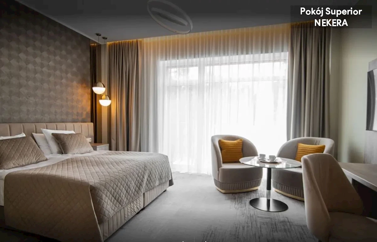 z trzema posiłkami. Śniadanie, obiad i kolacja w formie bufetu w restauracji Muza. Napoje do obiadu i kolacji dodatkowo płatne.Kategoria Nekera