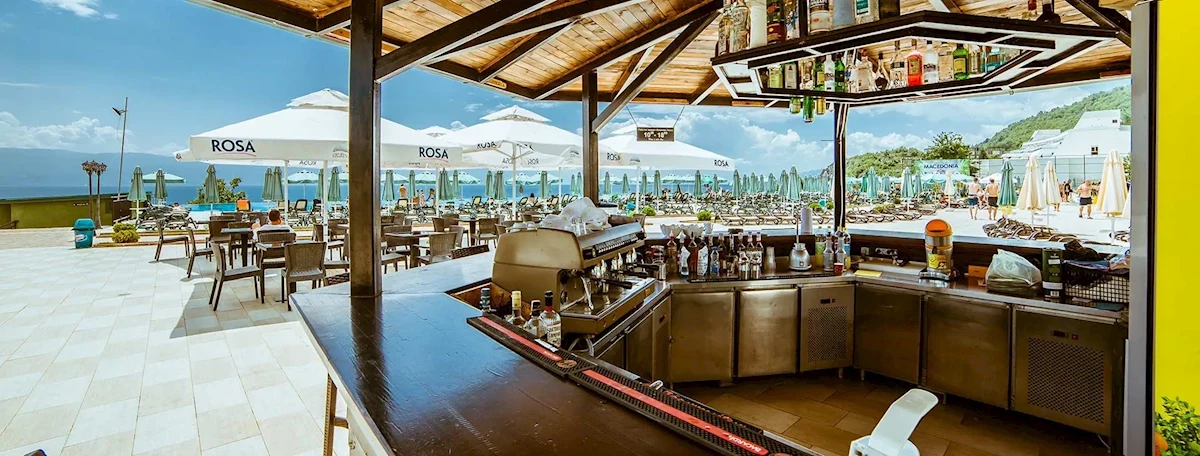 Hotel zlokalizowany jest bezpośrednio nad Jeziorem Ochrydzkim, na niewielkim wzniesieniu gwarantujacym piekną panoramę. Obiekt znajduje sie w pobliżu miejscowości Struga, gdzie dojechać można autobusem spod hotelu (ok. 1 EUR/os) lub taxówką (ok. 2 EUR/os) - to tylko 7km. Lokalizacja zdala od centrum dużych miast zapewnia spokojne wakacje w Macedonii. Z hotelu do Ochrydy jest ok.20 km, a do najbliższego lotniska ok. 15km.Wyposażenie