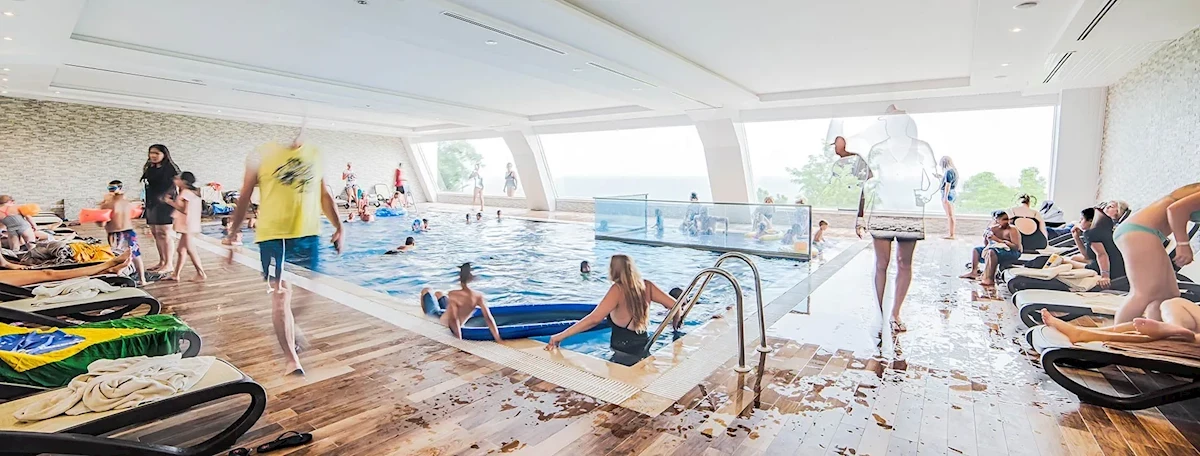 Hotel to nie lada gratka dla miłośników wodnego szaleństwa - na terenie Izgrev Spa & Aquapark znajduje się jeden z największych aquaparków w regionie, do którego goście mają bezpłatny i nielimitowany dostęp. Nowoczesny kompleks 6 basenów z 10 zjeżdżalniami robi wrażenie. A duży lagunowy basen odkryty typu infinity pool to miejsce które zostaje w pamięci gości na zawsze. Lubiący relaks nad wodą docenią bezpłatne leżaki i parasole przy basenach i na plaży. Najmłodsi goście mogą również skorzystać z bezpiecznego brodzika, placu zabaw oraz bogatego pakietu animacji. Na terenie hotelu znajdują się również Recepcja 24h, 4 windy, sklep, bankomat, punkt wymiany walut.Zakwaterowanie