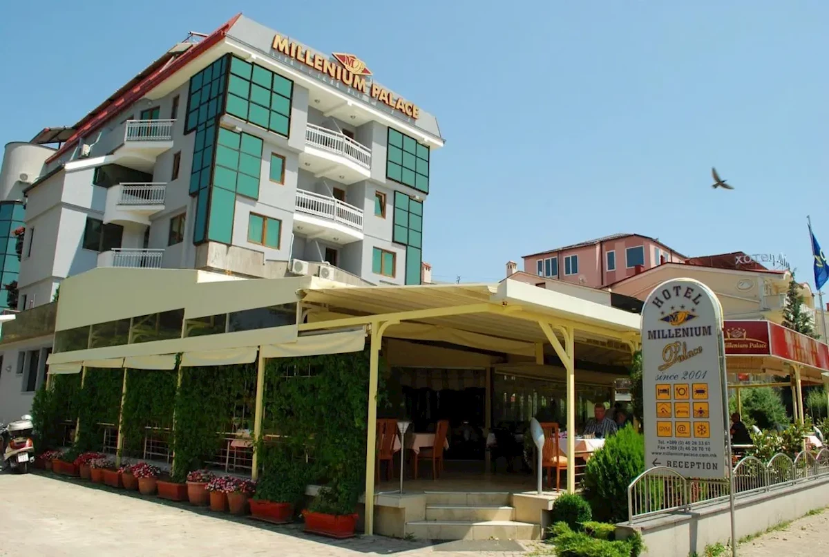Millenium Palace to zadbany ośrodek wypoczynkowy usytuowany w Macedonii Północnej, w południowo-zachodniej części kraju, bezpośrednio przy malowniczym jeziorze Ochrydzkim. W odległości 300 metrów od placówki udostępniono sklepy, restauracje oraz bary. 500 metrów od niej znajduje się centrum kurortu Ochryda, który dysponuje rozwiniętą infrastrukturą turystyczną. W starej części tego pięknego kurortu można znaleźć ruiny starożytnego amfiteatru, a także zabytki sakralne, np. cerkiew św. Jana Teologa. Lotnisko oddalone jest o 150 kilometrów.Wyposażenie