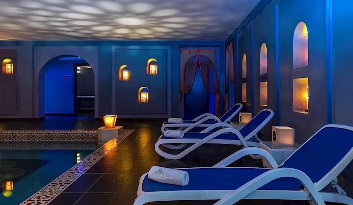 Hotel wellness LABRANDA Targa Aqua Parc jest oddalony o ok. 245 km od Agadir (Essaouira około 145 km, Casablanca ca. 243 km). Do turystycznego centrum jest ok. 8 km. Trzeba pokonać około 8 km, aby dotrzeć do supermarketu bądź pozostałych sklepów. Najbliższe bary i restauracje położone są również w odległości w odległości ok. 8 km. Dyskoteka również znajduje się w odległości ok. 8 km. Dalsze możliwości rozrywki podczas pobytu gwarantują kino i teatr (ok. 8 km). Z hotelu można wygodnie dotrzeć do następujących atrakcji: Le Jardin Secret (ok. 8 km), Marrakech Museum (ok. 8 km), Djemaa El Fna (ok. 8 km), Saadian Tombs (ok. 9 km) oraz El Badi Palace (ok. 9 km). Wypożyczalnia samochodów, wypożyczalnia motocykli, postój taksówek (ok. 1,6 km) i przystanek autobusowy (ok. 1,6 km) zapewniają mobilność na wakacjach. Do bardziej odległych miejsc można dotrzeć z dworca kolejowego oddalonego o około 3 km. W nagłych sytuacjach opieki medycznej udzieli oddalony o ok. 5 km szpital. Lotnisko (FEZ) położone jest ok. 536 km od hotelu. Kolejne lotnisko (RAK) jest oddalone o ok. 5 km.Wyposażenie: