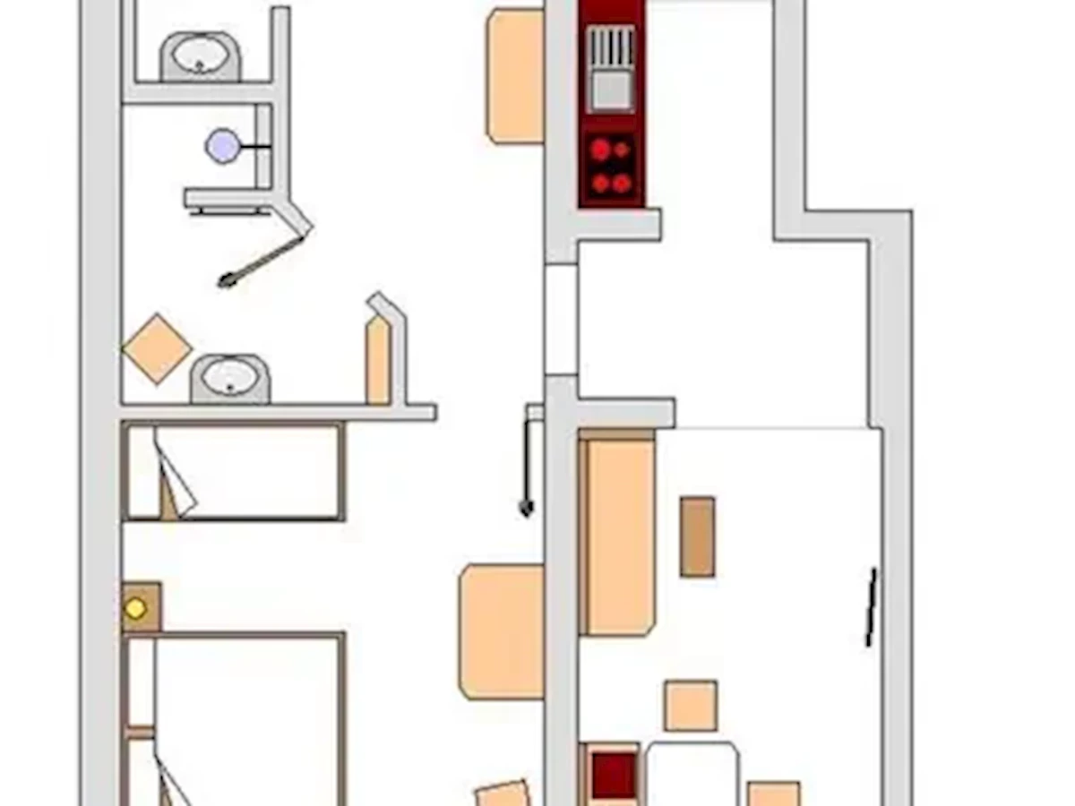 pokój dzienny: strefa jadalna i nisza kuchenna2x pokój sypialny: łóżko podwójne i dostawkanisza kuchenna: kuchenka, ekspres do kawy, lodówka i tosterłazienka: prysznic lub wanna, WC i suszarka do włosówbalkon (wschodni, widok na góry)wyposażenie: TV i Wi-Fi