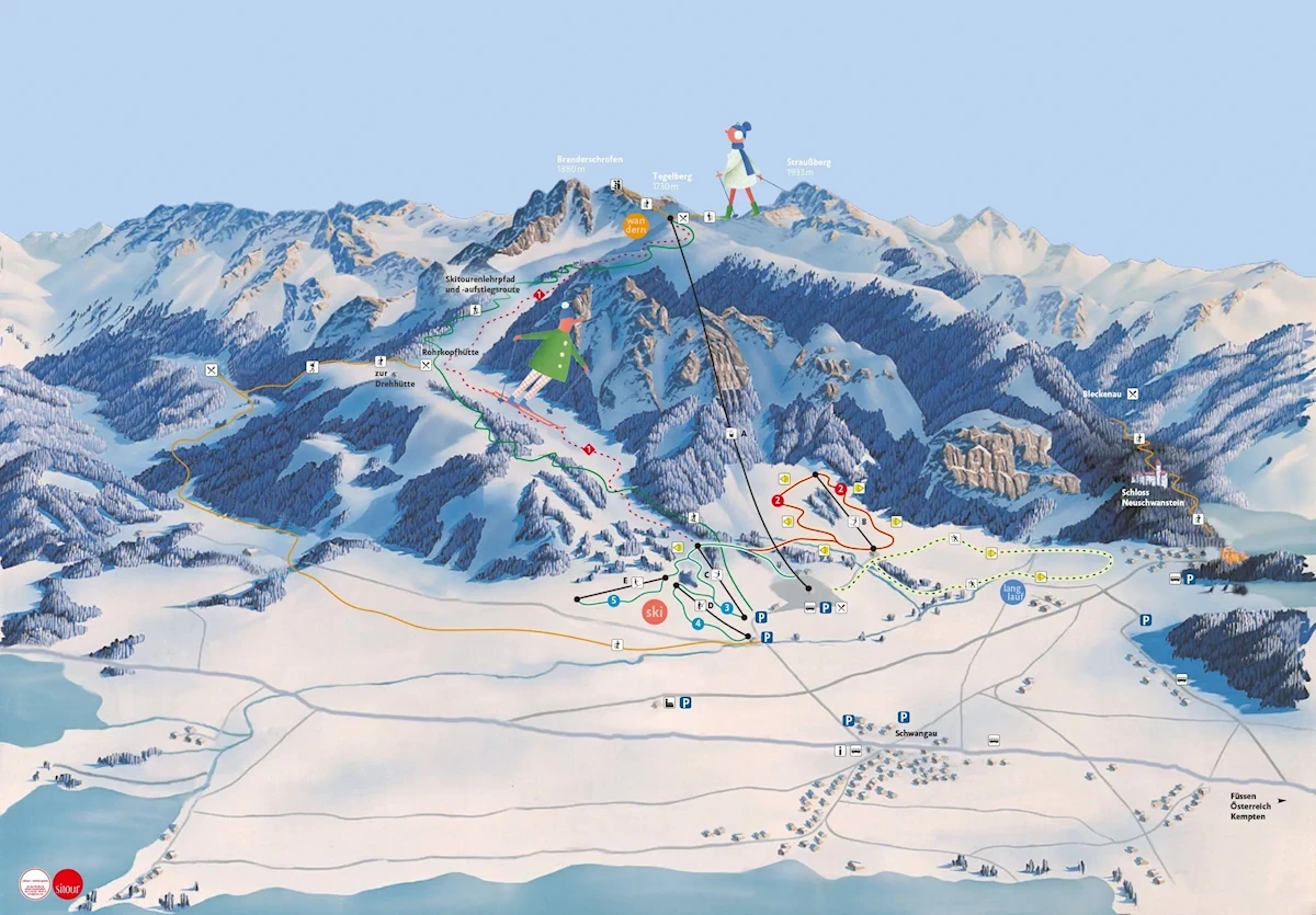 Kolej: Füssen (w miejscowości)Przelot: Memmingen (ok. 80 km), Innsbruck (ok. 100 km), Friedrichshafen (ok. 120 km), Augsburg (ok. 110 km), Monachium (ok. 160 km)Karnet narciarski - dodatkowe informacje.