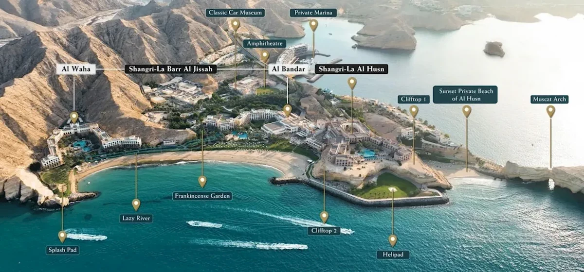Shangri-La Barr Al Jissah - Al Waha to miejsce stworzone z myślą o rodzinach i osobach szukających relaksu w wyjątkowym otoczeniu. Z szeroką ofertą pokoi, udogodnień i atrakcji, ten obiekt zapewnia komfortowy pobyt, pełen wrażeń, z doskonałą obsługą, doskonały dla wszystkich szukających odpoczynku w luksusowej atmosferze.Położenie