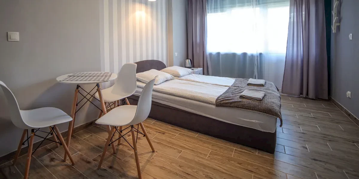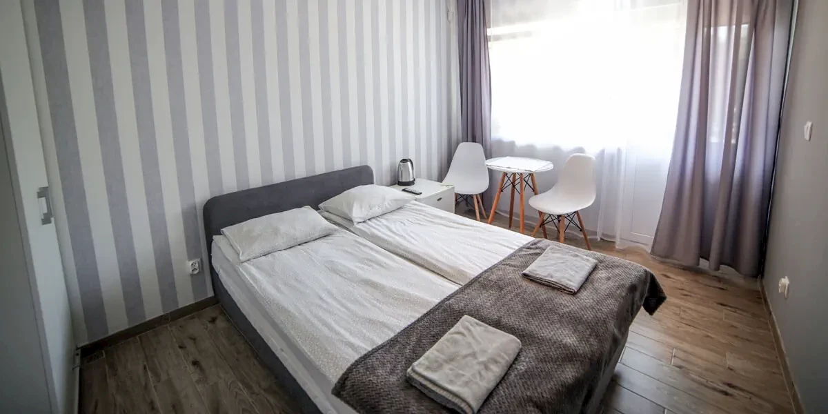 Kameralny pokój, w wyposażeniu: smart TV, wifi, czajnik, lodówka, kuchenka, naczynia, ręcznikiOferta