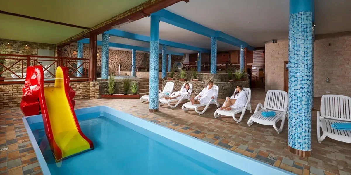 Udogodnienia: Basen kryty, Basen dla dzieci, Jacuzzi, SPA, Sauna, Grota solna, Wellness, Bar / restauracja, Sala zabaw dla dzieci, Ogród / Park, Plac zabaw dla dzieci, Boisko sportowe, Kort tenisowy, Kręgielnia, Siłownia, Salka fitness, Pobyt z pupilem, Winda, Dla niepełnosprawnych, Parking, Płatność kartą, Małpi gaj