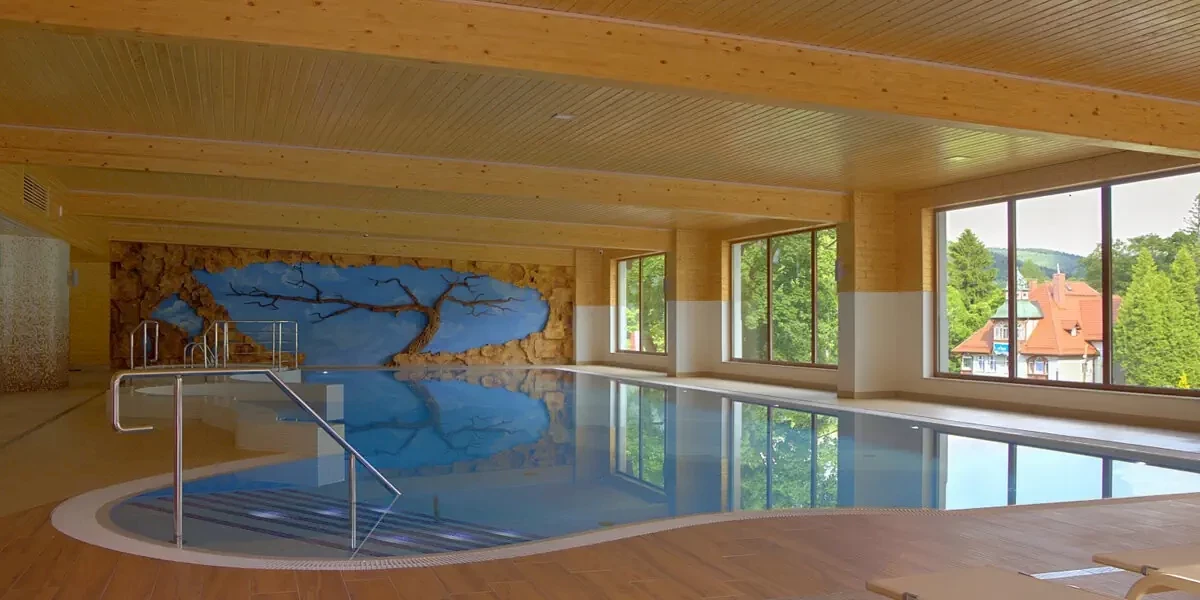 Poranne pływanie w basenie + jacuzzi. Duży wybór masaży.