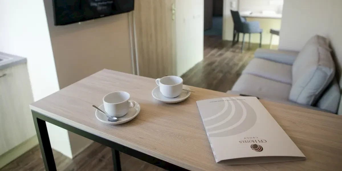 Przestronny, nowocześnie urządzony pokój wyposażony w TV, Wi-Fi, aneks kuchenny oraz łazienkę z wanną lub prysznicem.Prezentowane w informacji opisy, opinie oraz zdjęcia przedstawiają subiektywne odczucia ich autora i nie stanowią części oficjalnego opisu obiektu organizatora turystyki (przedsiębiorcy turystycznego). Pokoje oraz udogodnienia mogą się różnić od zawartych w informacji, za co Travelplanet.pl S.A. nie ponosi odpowiedzialności. Oficjalny opis dostarczony przez organizatora turystyki znajdziesz na stronie poświęconej wybranej przez Ciebie imprezie turystycznej, po wskazaniu interesującego Cię terminu wyjazdu.