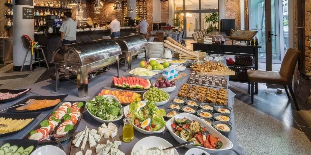 Doskonałe śniadanie w formie bufetu. Szeroki wybór dań słodkich i słonych oraz napojów.