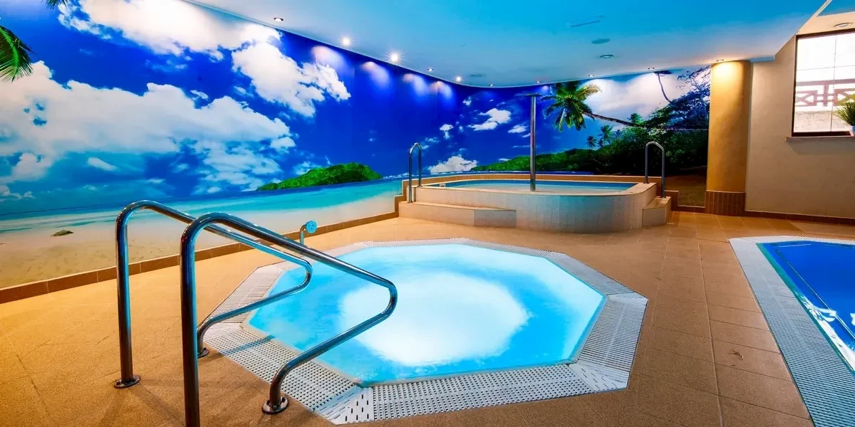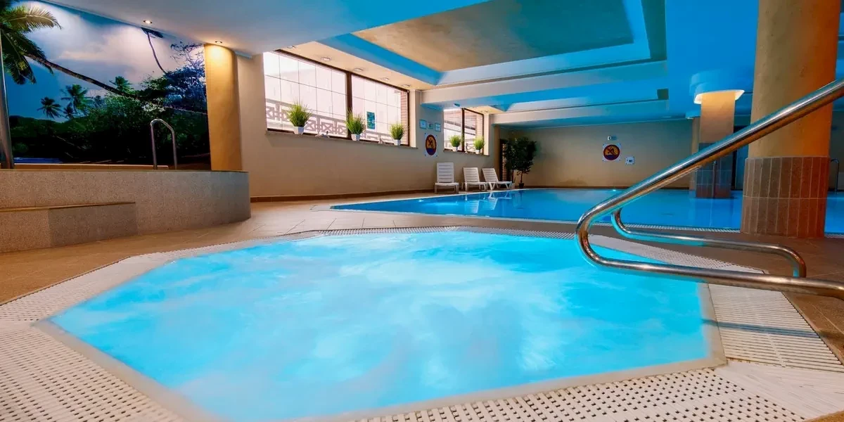 Udogodnienia: Basen kryty, Basen dla dzieci, Jacuzzi, SPA, Sauna, Grota solna, Masaże, Wellness, Bar / restauracja, Plac zabaw dla dzieci, Boisko sportowe, Pobyt z pupilem, Winda, Dla niepełnosprawnych, Parking strzeżony / monitorowany, Parking, Płatność kartą