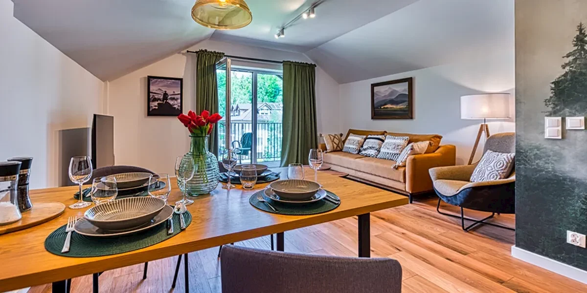 - Pobyt w apartamencie z aneksem kuchennym (dla max 4 osób)