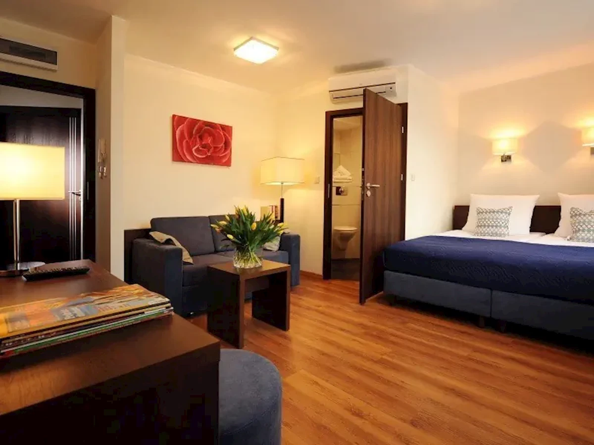 Pokoje wyposażone są w klimatyzację, centralne ogrzewanie i łazienkę. Pomieszczenia mieszkalne i sypialne wyposażone są w łóżko podwójne bądź sofę. Istnieje możliwość dostawki. W pokoju znajduje się biurko. Dostępne są również lodówka, minilodówka i ekspres do kawy / herbaty. Komfortowe wyposażenie wraz z internetem, telefonem, telewizorem i Wi-Fi (bezpłatnie) da Państwu poczucie prawdziwie urlopowego wypoczynku. Łazienki dysponują prysznicem i wanną. W łazience znajduje się suszarka do włosów i szlafroki. Hotel oferuje pokoje dla niepalących.Informacje dodatkowe (Pokoje Ekonomiczne/ Promocyjne/ Aneks/ Run Of the House):