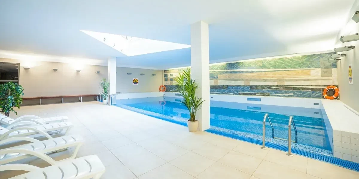 Udogodnienia: Basen kryty, Sauna, Bar / restauracja, Kącik zabaw dla dzieci, Ogród / Park, Plac zabaw dla dzieci, Klimatyzacja, Pobyt z pupilem, Winda, Dla niepełnosprawnych, Parking strzeżony / monitorowany, Parking, Płatność kartą