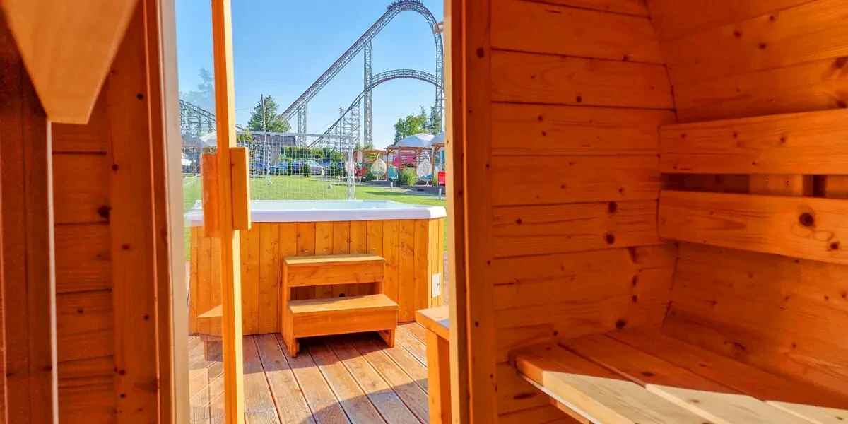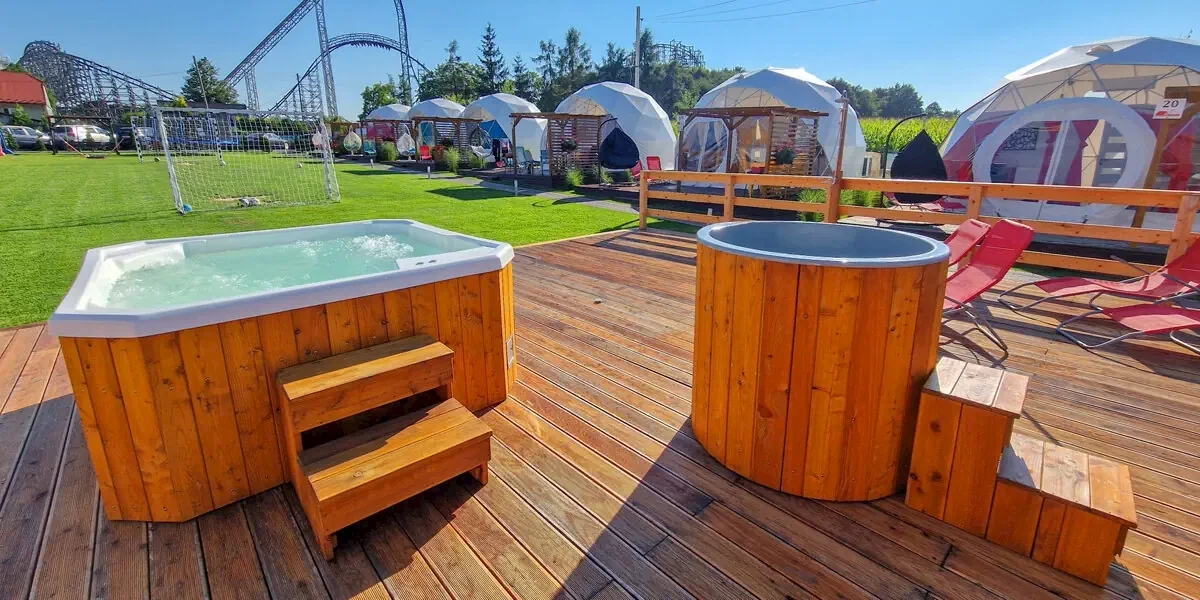Domek sferyczny VIP PREMIUM JACUZZI (36 m2) z prywatnym jacuzzi na tarasie to niesamowity domek z widokiem na gwiazdy i rollercoastery! Idealny dla osób poszukujących nietypowego noclegu najbliżej parku rozrywki Energylandia! Domek z 1 sypialnią i salonem z rozkładaną sofą, aneksem kuchennym, stołem jadalnym, łazienką i tarasem. W wyposażeniu: prywatne jacuzzi wewnętrzne, zewnętrzne, szlafroki, klimatyzacja z funkcją grzania, TV, WiFi, pościel. W kuchni: płyta indukcyjna, lodówka, zamrażarka, ekspres do kawy, czajnik elektryczny, kieliszki do wina, akcesoria do grillowania, herbata, sól, pieprz. Ponadto szafa ubraniowa, stolik nocny, zabawki dla dzieci, wieszaki, moskitiera, czujnik dymu, czadu, gaśnica. W łazience: wanna z masażem, WC, ręczniki, suszarka do włosów. Na tarasie prywatne jacuzzi, leżaki plażowe, stół i krzesła, grill. Domek nr 21Domek Tradycyjny 4-os. 6A