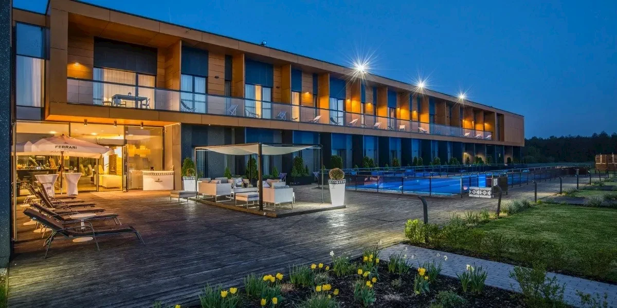 BoniFaCio SPA & Sport Resort to nowoczesny hotel harmonijnie wkomponowany w malownicze otoczenie łąk i lasów. Rozległe przeszklone powierzchnie pozwalają gościom cieszyć się pięknymi widokami natury, a bogata infrastruktura sportowa oraz zaplecze wellness zapewniają idealne warunki zarówno do relaksu, jak i aktywnego wypoczynku. Udogodnienia: Basen kryty, Jacuzzi, SPA, Sauna, Masaże, Wellness, Zabiegi odnowy biologicznej, Bar / restauracja, Ogród / Park, Plac zabaw dla dzieci, Boisko sportowe, Kort tenisowy, Sala sportowa, Siłownia, Salka fitness, Sporty wodne, Klimatyzacja, Pobyt z pupilem, Winda, Dla niepełnosprawnych, Parking, Płatność kartą