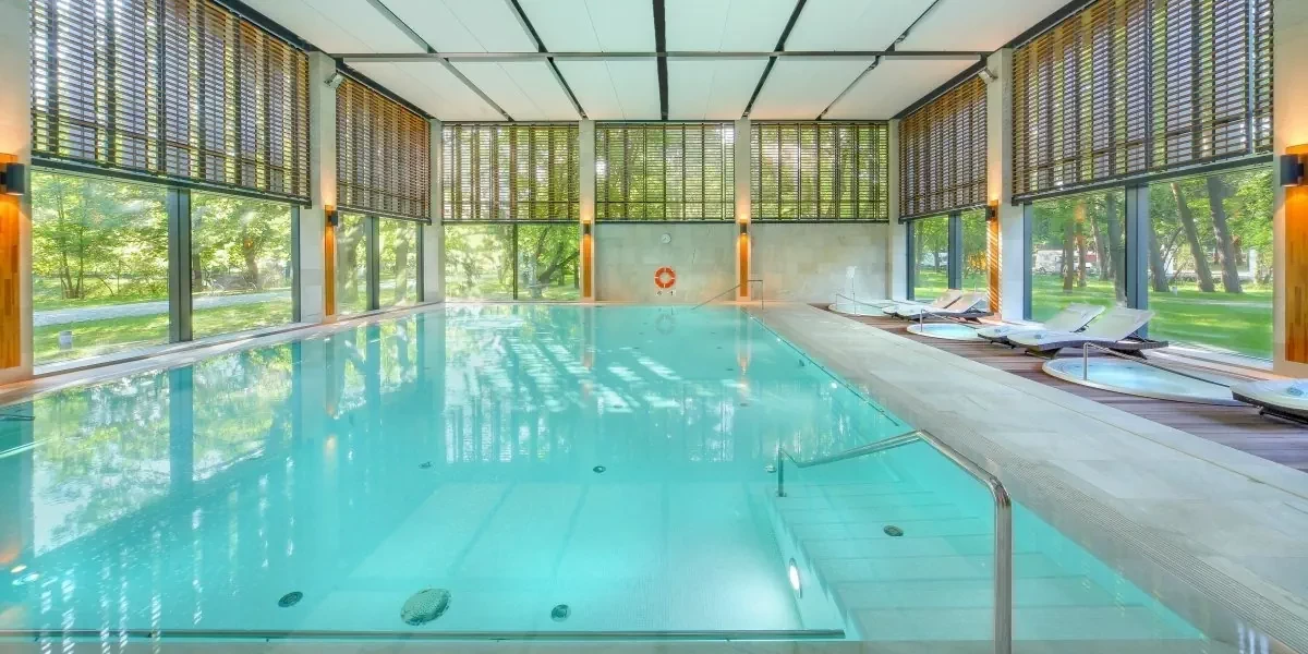 Udogodnienia: Basen kryty, Basen solankowy, Jacuzzi, SPA, Sauna, Wellness, Zabiegi odnowy biologicznej, Bar / restauracja, Ogród / Park, Siłownia, Klimatyzacja, Pobyt z pupilem, Winda, Dla niepełnosprawnych, Parking, Płatność kartą