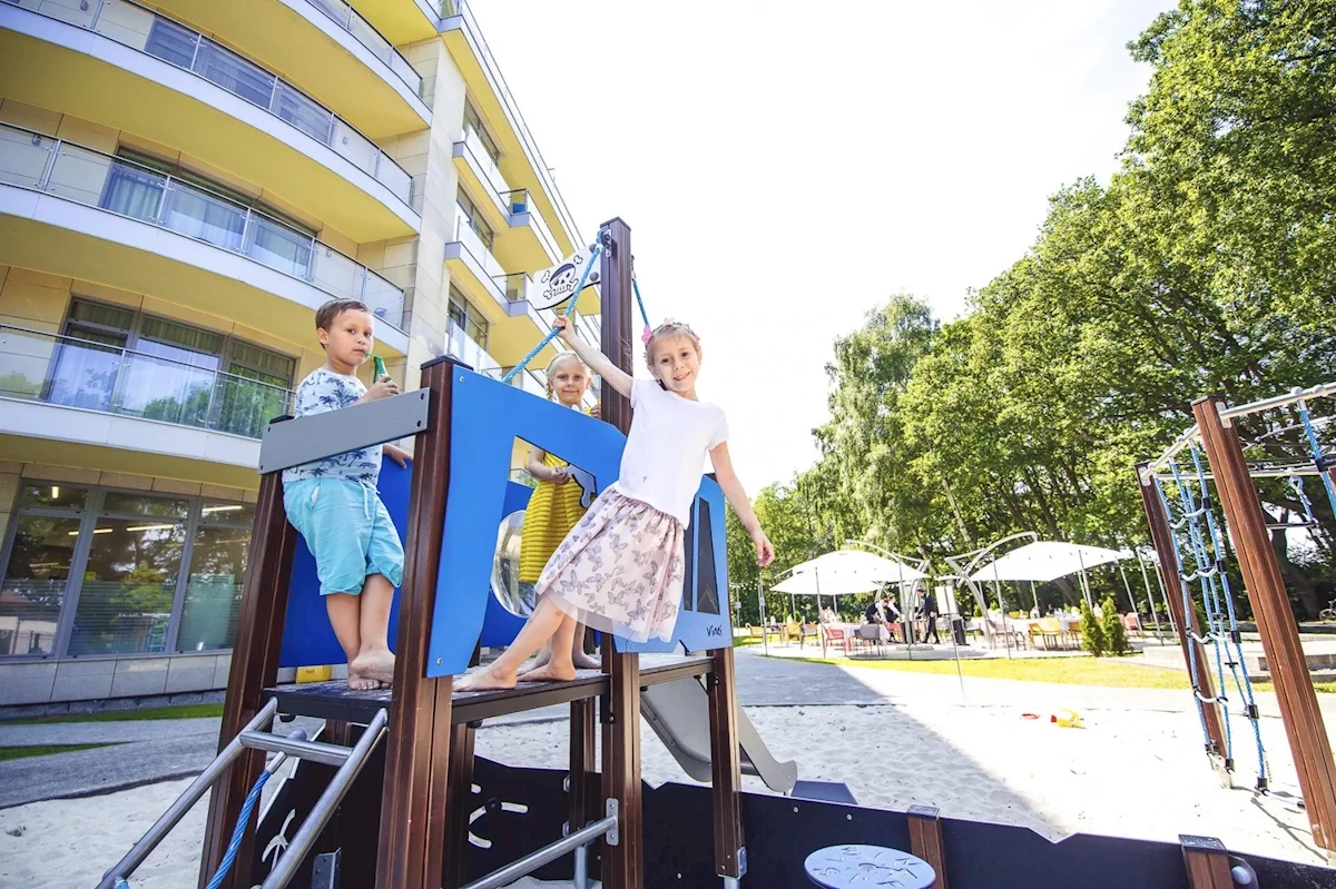 Poszczególne piętra kompleksu osiągalne są za pomocą windy. Dopełnieniem komfortowego pobytu jest możliwość skorzystania z przechowalni bagażu, sejfu i bankomatu. W pomieszczeniach ogólnodostępnych skorzystać można z Wi-Fi. Pomocą w rezerwacji wycieczek służy Państwu nasz tour-desk. Do oferty gastronomicznej hotelu należy restauracja, kawiarnia i bar. W obrębie obiektu znajduje się malowniczy ogród i plac zabaw. Na terenie kompleksu znajduje się również pokój zabaw dla dzieci. Auto pozostawić można w garażu oraz na parkingu. Do pozostałych oferowanych na miejscu usług należą: wielojęzyczny personel, 24-godzinna ochrona, babysitting, opieka nad dziećmi, opieka medyczna i pralnia. Podróżnych preferujących zapoznanie się z okolicą w sposób aktywny ucieszy z pewnością możliwość wypożyczenia rowerów.Pokoje