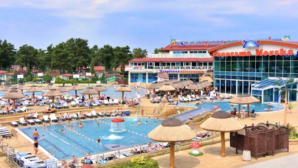 AQUAPARK (2 baseny wielofunkcyjne zewnętrzne połączone zjeżdżalnią, które posiadają punkty wodnego masażu ściennego i karku, grzybek wodny, leżanki rurowe z masażem powietrznym oraz zjeżdżalnię łączącą niecki basenowe. Baseny z podgrzewaną wodą (od 29.05 do 16.09) mają głębokość od 1,20 do 1,35m, 6 zjeżdżalni wodnych (zewnętrznych czynnych od 16.06-09.09) oraz 4 zjeżdżalnie wewnętrzne, basen z falą morską zewnętrzny z gejzerami powietrznymi (od16.06-09.09), basen wewnętrzny dla dzieci oraz basen z rwącą rzeką, baza zabiegowa, centrum SPA, strefa WELLNESS z saunami, jacuzzi, łaźnią parową, fitness, boiska do gry, aqua aerobic, zabiegi rehabilitacyjne, 8 sal konferencyjnych, 3 restauracje - klimatyzowana TROPICOCO oraz Laguna w centralnej części kompleksu, La Costa z tarasem widokowym na terenie Aquaparku oraz Bar w Centrum Rozrywki FUNziBAR.Wyżywienie ALL INCLUSIVE