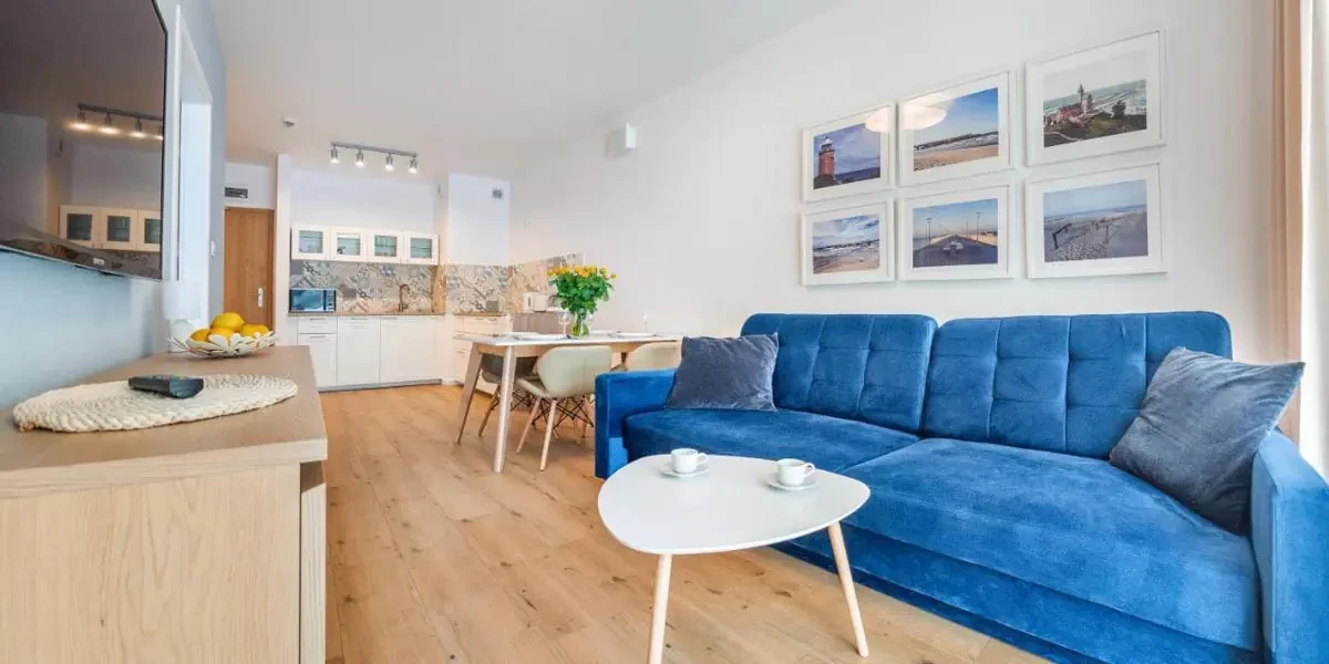 Nowocześnie wyposażone apartamenty wykończono w przyjemny sposób – stonowane barwy, przemyślane meble i atrakcyjne dodatki sprawiają, że można poczuć się tutaj jak w domu przeniesionym nad Bałtyk. Apartamenty są dwupokojowe, składają się z przytulnej zamykanej sypialni z podwójnym łóżkiem oraz salonu z rozkładaną kanapą, kącikiem telewizyjnym, nowym aneksem kuchennym i kącikiem jadalnym. Całość uzupełnia łazienka oraz balkon, dzięki którym można spędzić tutaj komfortowe i niezależne wakacje zgodnie z własnymi upodobaniami. Udogodnienia: Pobyt z pupilem, Winda, Płatność kartą