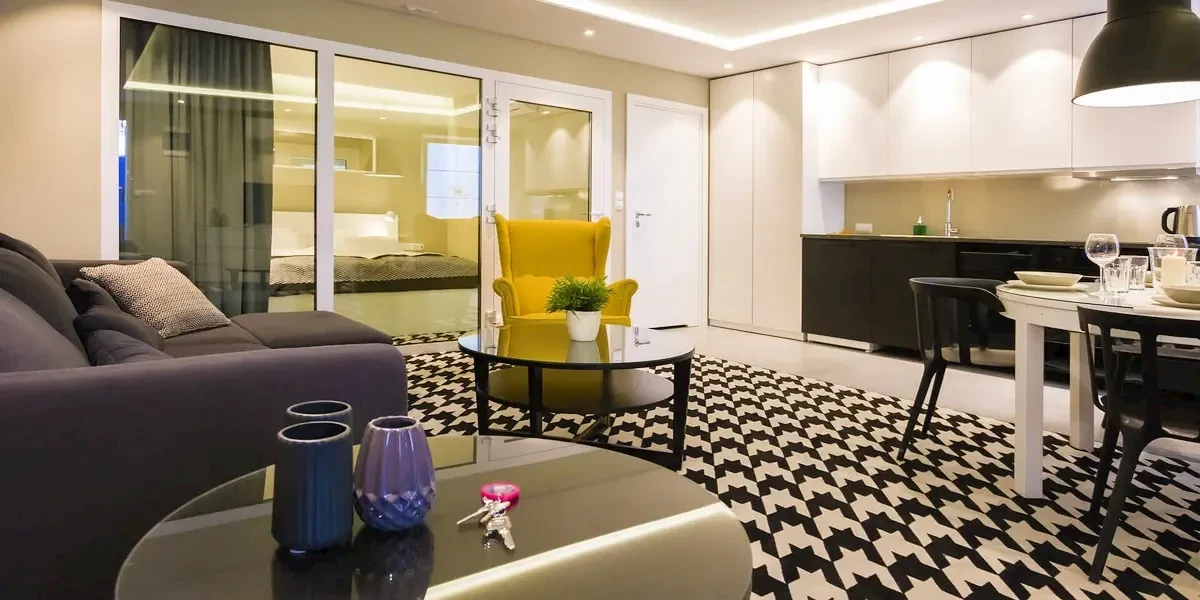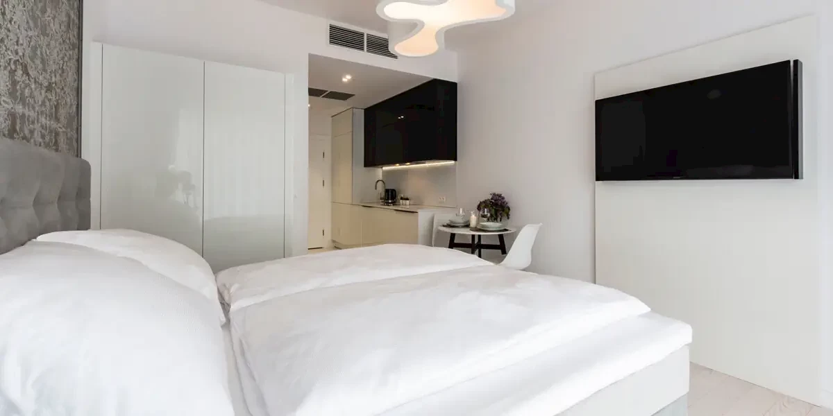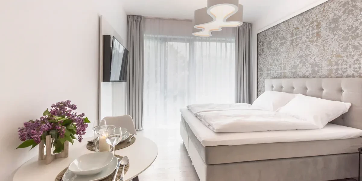 Komfortowy czteroosobowy apartament wyposażony w aneks kuchenny, podwójne łóżko oraz rozkładana sofę, telewizor i bezprzewodowy dostęp do internetu. Każdy apartament posiada prywatną łazienkę z kabiną prysznicową.Oferta