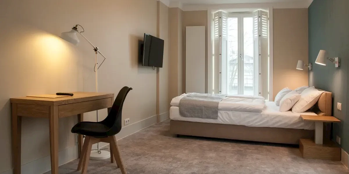 Komfortowy, klimatyzowany pokój wyposażony w: TV, Wi-Fi, czajnik, mini lodówkę oraz łazienkę z prysznicem, suszarką do włosów i ręcznikami.Oferta