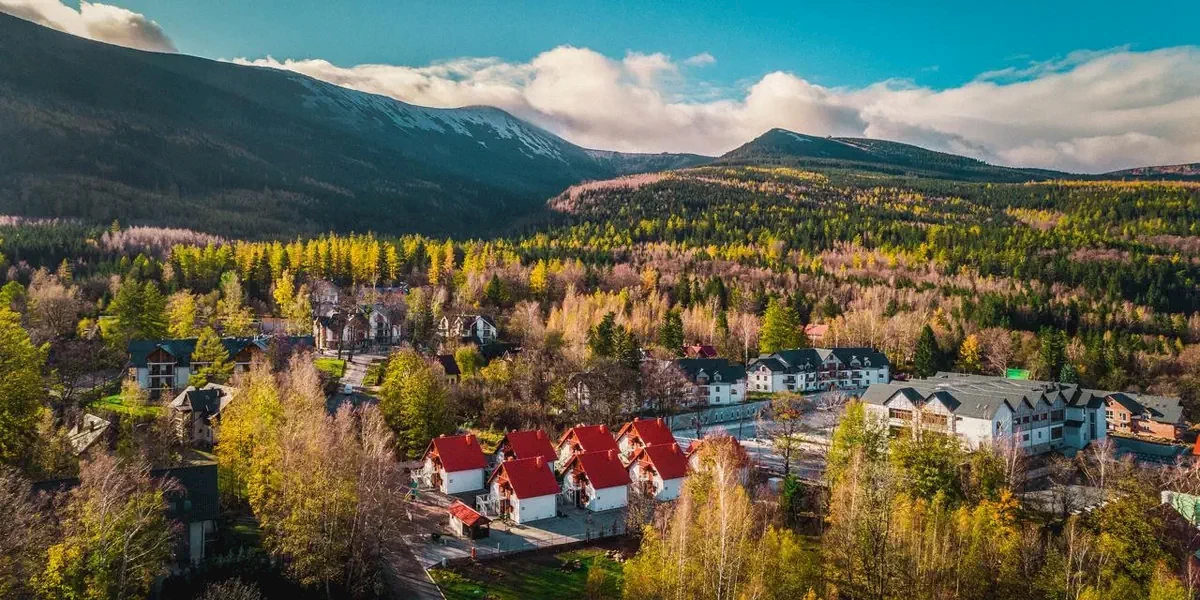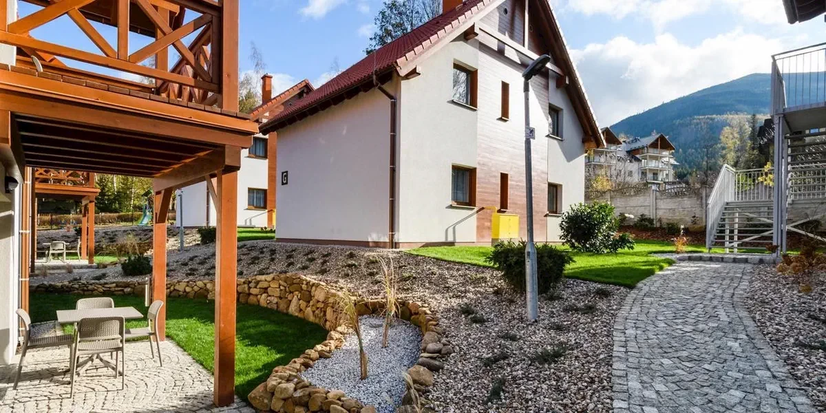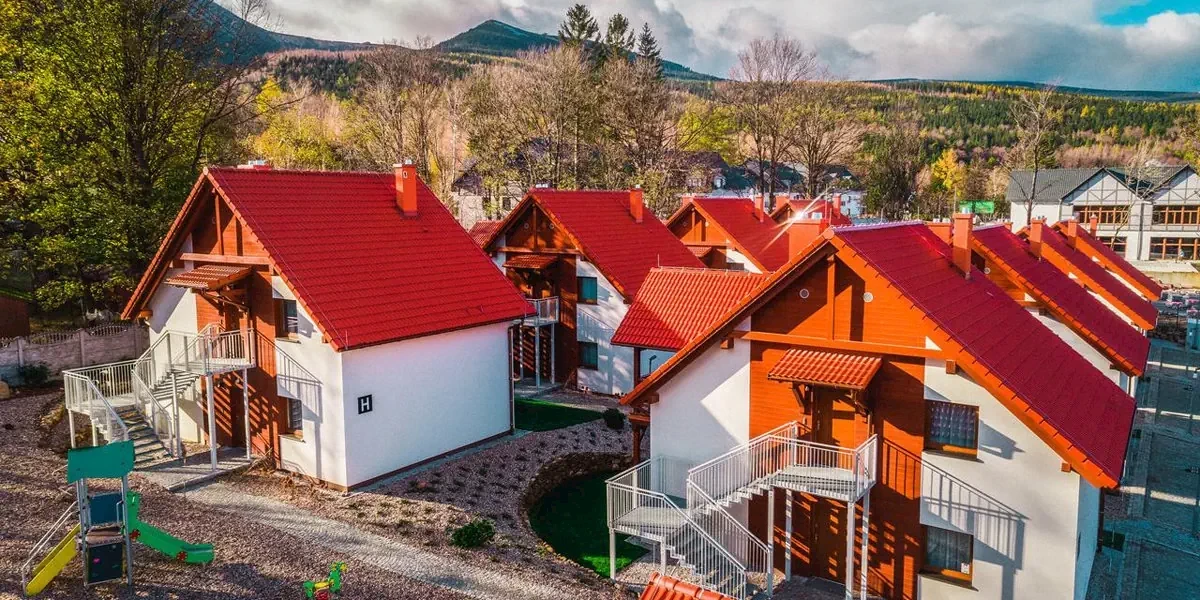 Domki w Karpaczu SARNIA Sun & Snow z Kominkami to przyjemny kompleks ośmiu nowych, zadbanych domków zlokalizowanych w spokojnej okolicy nieopodal lasu i szlaków górskich, w tym na Śnieżkę, u której stóp położone jest osiedle. Teren jest ogrodzony, bezpieczny, zaopatrzony w plac zabaw i miejsca do siedzenia na powietrzu, a zarazem jedynie 1,5 km dzieli go od centrum Karpacza.