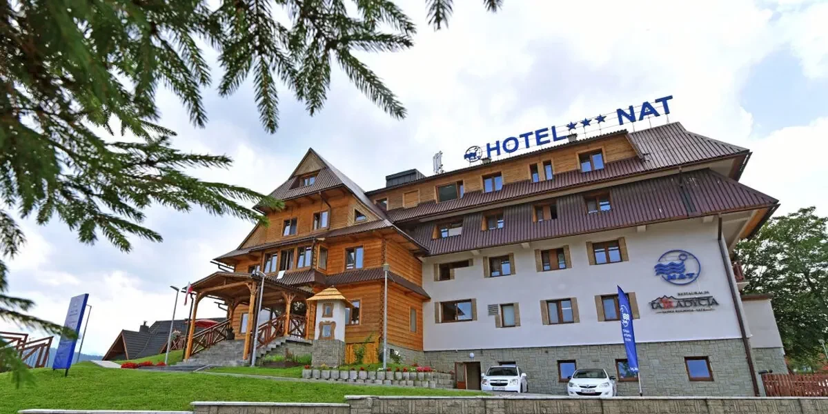 Malowniczo położony u podnóża Tatr Hotel*** NAT w Bukowinie Tatrzańskiej to miejsce wypoczynku na najwyższym poziomie. Hotel świetnie zlokalizowany w centrum Bukowiny zapewnia łatwy dostęp do okolicznych atrakcji. W hotelu znajduje się strefa wellness do dyspozycji gości, a w sąsiedztwie baseny termalne, wyciągi narciarskie i górskie szlaki turystyczne.