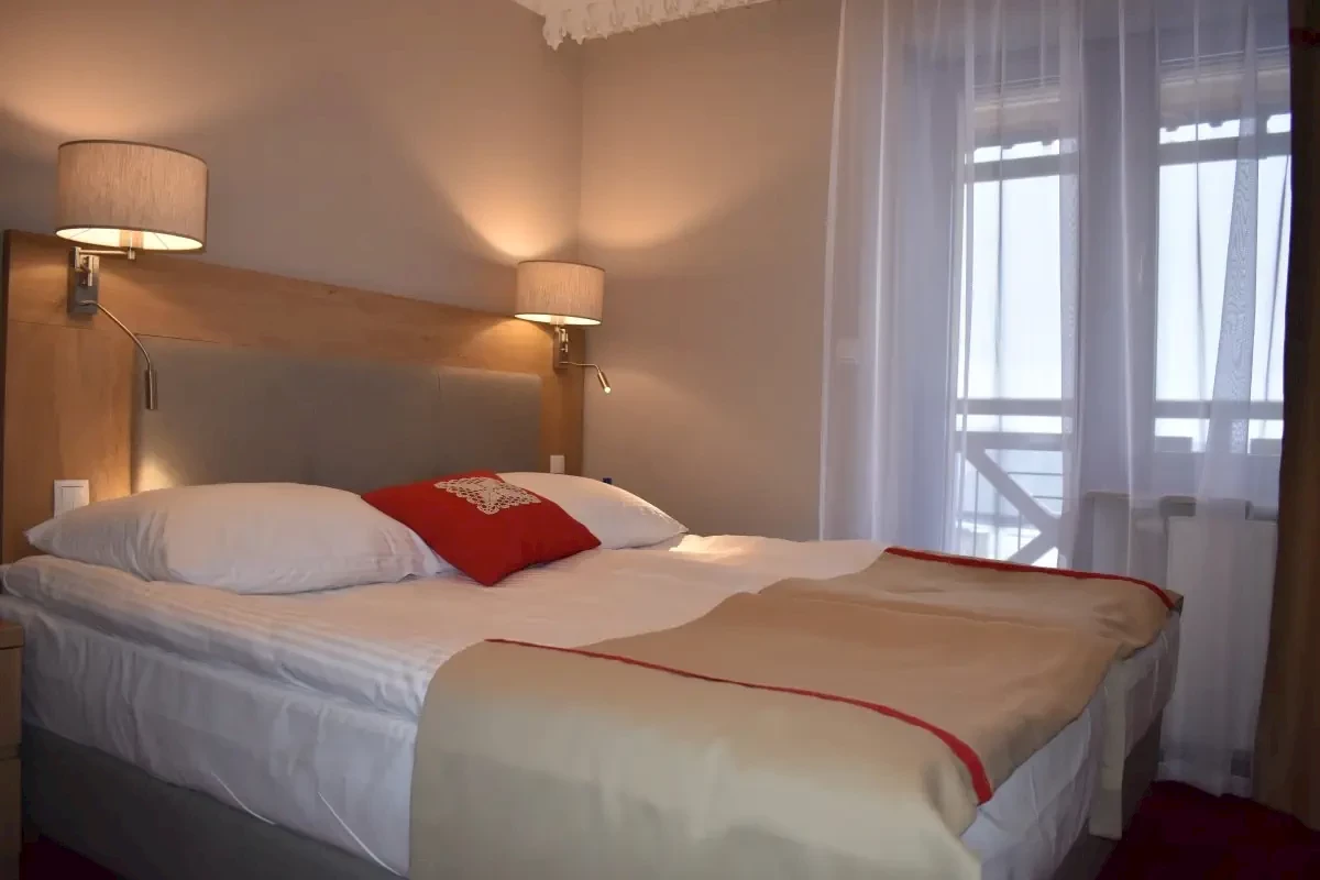 nowoczesne i eleganckie pokoje 1, 2 i 3 os., pokoje studio. Niektóre pokoje z możliwością 1 dostawki. Wszystkie wygodnie urządzone, z góralskimi dodatkami. Część pokoi z widokiem na Tatry. W niezależnym budynku komfortowe apartamenty dwupoziomowe, idealne dla rodzin, z dwoma sypialniami (4-6 os.) oraz pokoje 2 os. z tarasem i widokiem na panoramę Tatr. Każdy z apartamentów posiada aneks kuchenny oraz niezbędne wyposażenie. Cena podana za pokój standard. Pozostałe rodzaje pokoi na zapytanie – wycena indywidualna.Do dyspozycji Gości