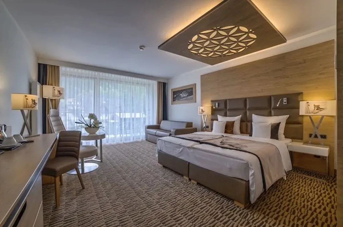 Obiekt posiada ponadto różnorodne możliwości ochłody w upalne dni, w tym basen, brodzik dla dzieci i basen kryty. Taras doskonale nadaje się na chwilę wytchnienia. O Państwa pełne odprężenie zadba kąpiel w jacuzzi. Pasjonatom sportu proponujemy rower / rower górski. Na okoliczne szlaki narciarskie dostępne sa Skipassy. Położenie obiektu czyni go optymalnym ośrodkiem dla narciarzy. Oferta aktywności sportowej hotelu obejmuje studio fitness, jak również za dodatkową opłatą bilard. Zapraszamy Państwa do odwiedzin naszej Strefy Wellness. Polecamy spa, saunę, łaźnię parową i solarium, jak również za dodatkową opłatą salon piękności i zabiegi masażu. Oprawę rozrywkową zapewnia miniklub.Wyżywienie: