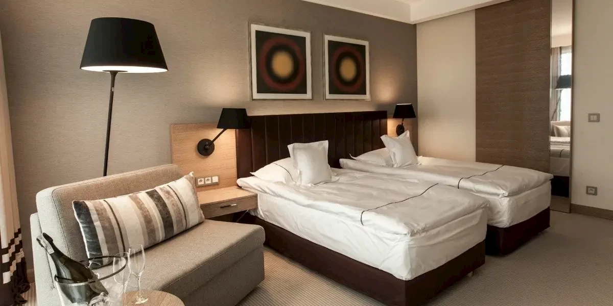 Komfortowy, przestronny pokój z panoramicznym widokiem na ogród. W wyposażeniu: klimatyzacja, TV LED, ekspres do kawy Tassimo, sejf, mini bar, łazienka z kabiną prysznicową, kosmetyki.Oferta
