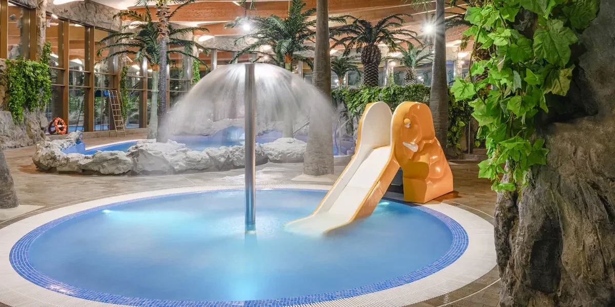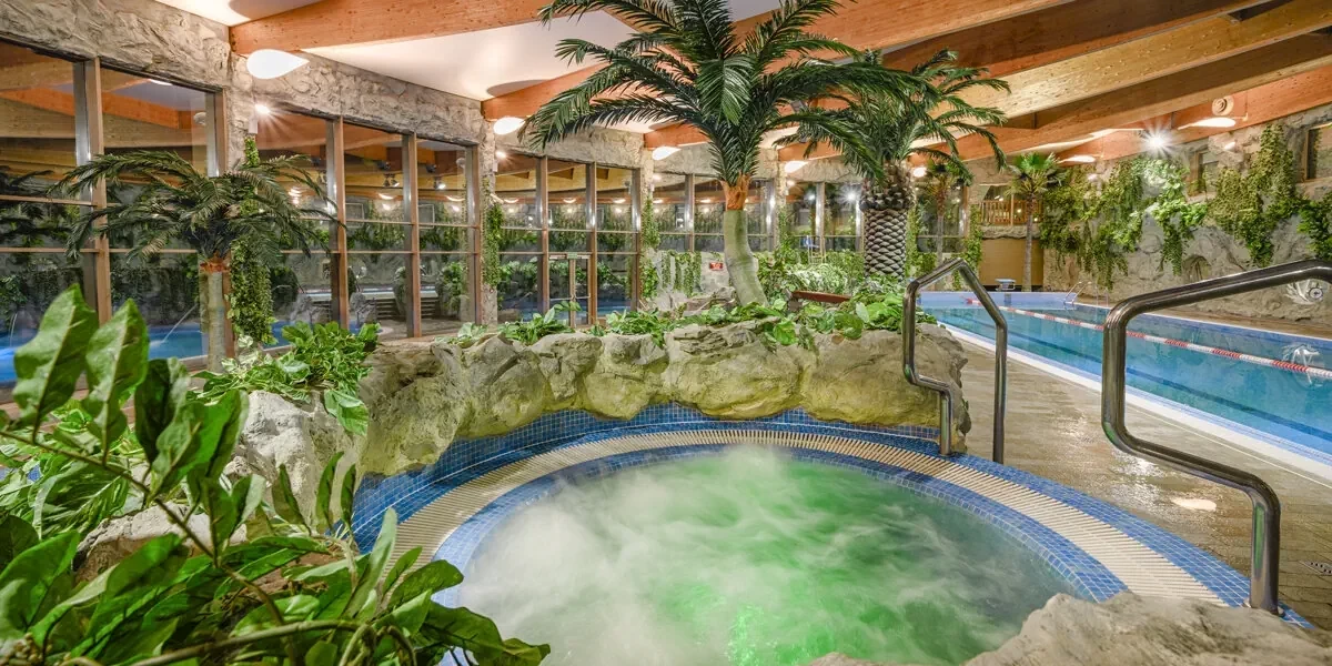 - Dostęp do aqua parku: basen rekreacyjny, basen sportowy, jacuzzi, sauna sucha, łaźnia parowa, rwąca rzeka, zjeżdżalnia, brodzik dla dzieci i inne wodne atrakcje (w godzinach otwarcia)