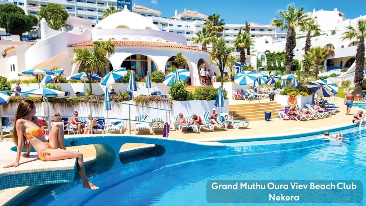 Grand Muthu Oura View Beach Club to 5-gwiazdkowy resort położony tuż przy plaży Praia da Oura w Albufeirze, oferujący wyjątkowe doświadczenia dla każdego gościa. Zaledwie kilka kroków dzieli Cię od złocistego piasku i szmaragdowych fal Oceanu Atlantyckiego. Hotel wyróżnia się przestronnymi apartamentami z w pełni wyposażonymi kuchniami, idealnymi zarówno dla rodzin, jak i par. Goście mogą korzystać z szerokiej oferty gastronomicznej, rozlokowanych w siostrzanych hotelach w pobliżu obejmującej 14 restauracji tematycznych, 4 bufety międzynarodowe, 8 kawiarni i 8 barów, dostępnych w ramach formuły All-Inclusive. Dodatkowo, hotel zapewnia liczne udogodnienia, takie jak basen Infinity z wodnymi zjeżdżalniami, strefę wellness z sauną i jacuzzi oraz bogaty program animacyjny. Dzięki lokalizacji w sercu Algarve, Grand Muthu Oura View Beach Club stanowi doskonałą bazę wypadową do odkrywania uroków regionu.