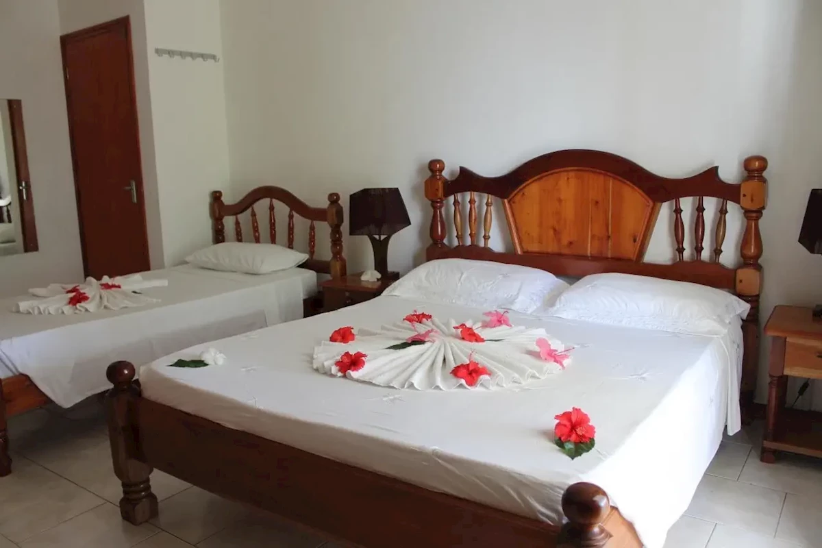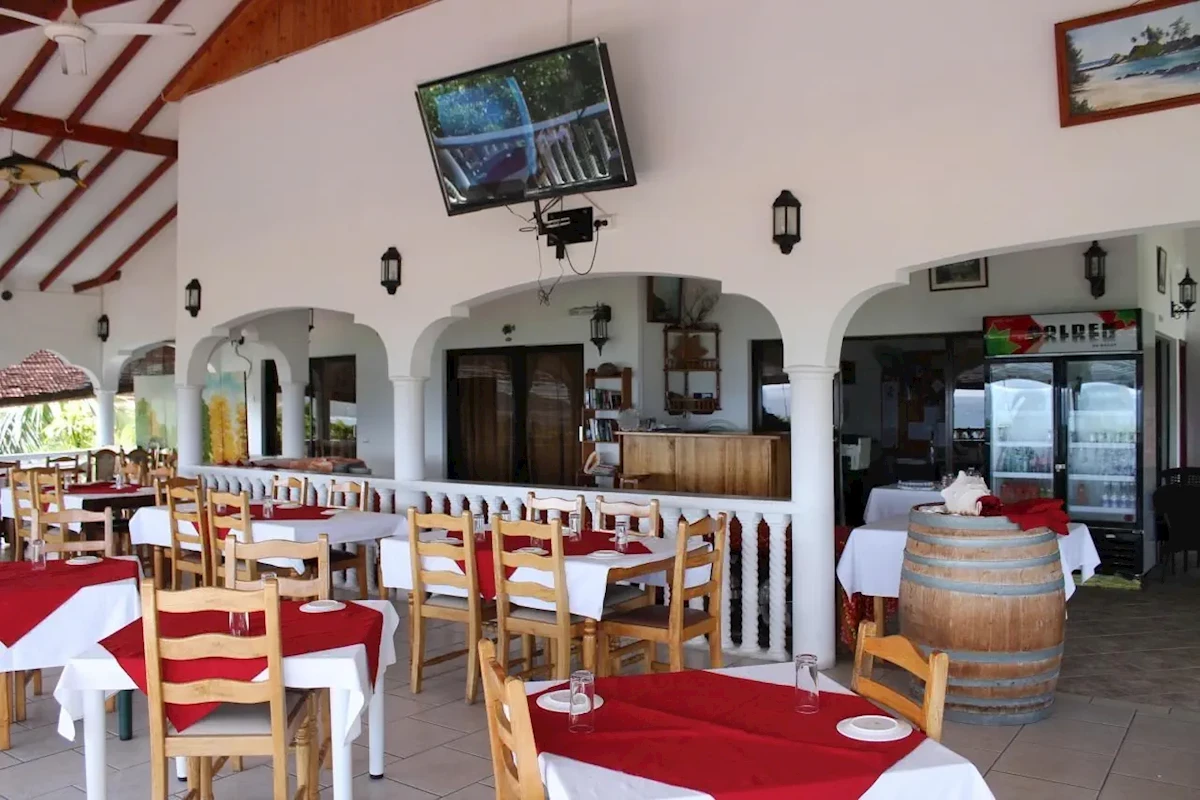 Recepcja, restauracja (specjalność: kuchnia kreolska, owoce morza, ryby) z tarasem (widok na ocean i wysepkę Silhouette), łącza internetowe.Pokoje